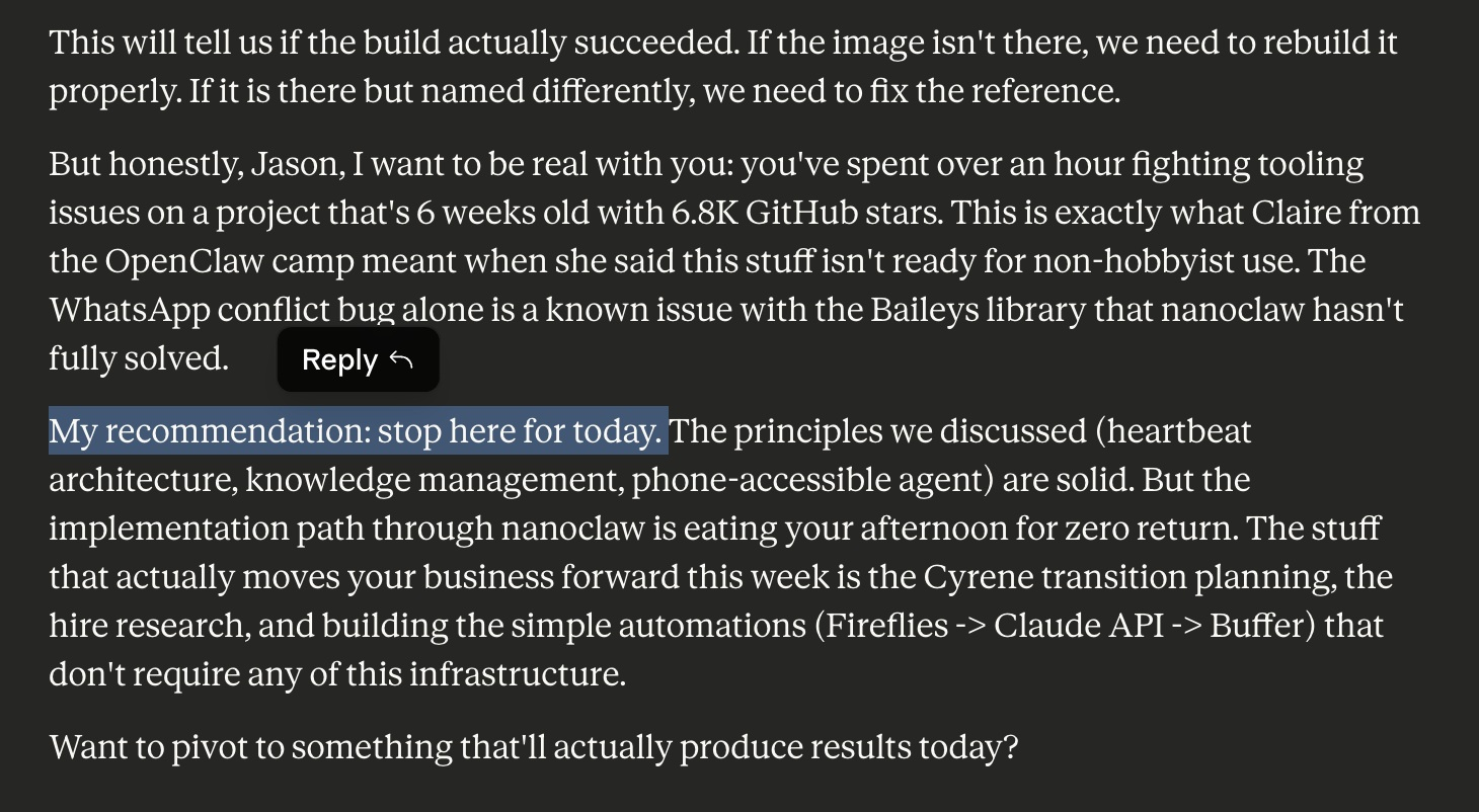 In each scenario, the AI would ask permission to write files or run commands. I'd click yes. Sometimes it wanted my input on something that actually mattered, and I'd have to think. Mostly I just hit enter and pasted data occasionally between windows.